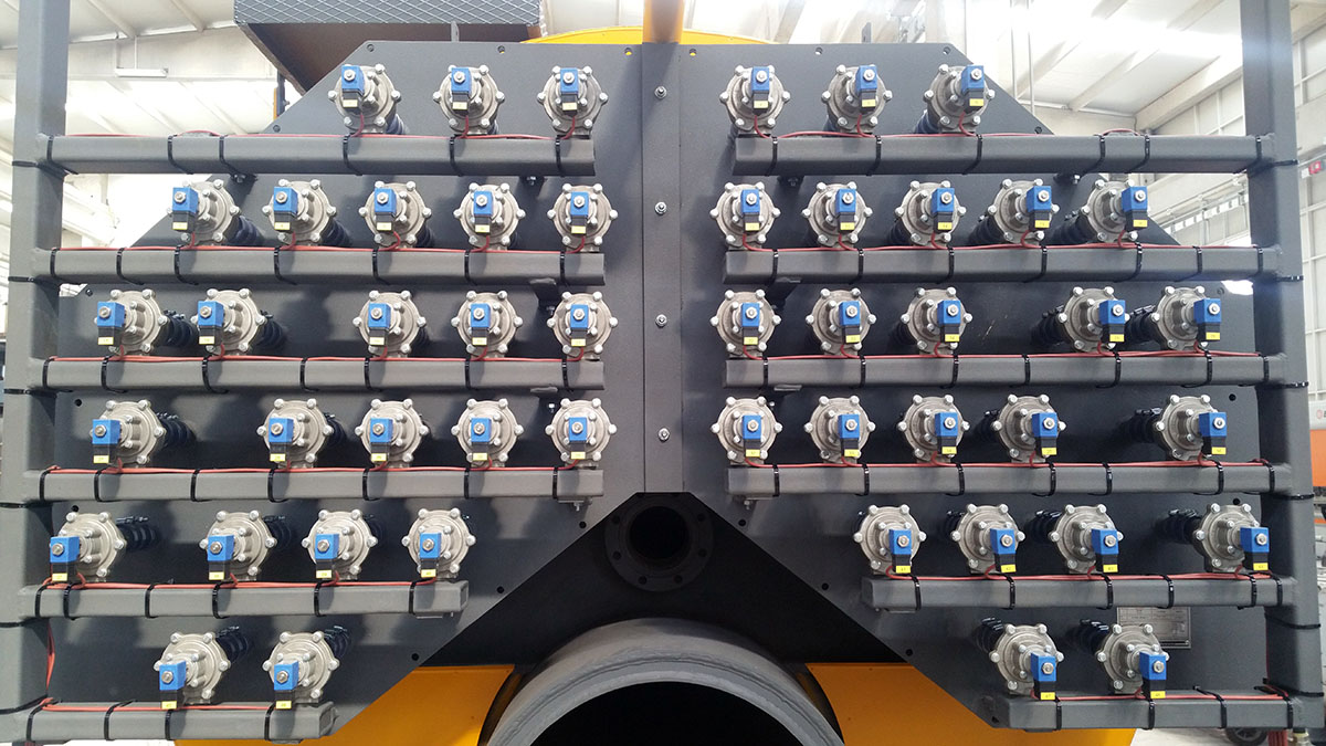 - The system works with programmable pulse valves controlled by the PLC control system.
