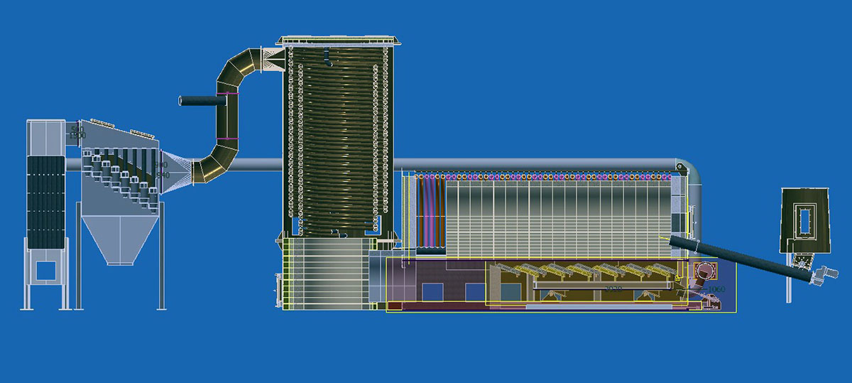 - Coils made with Mannesmann steel pipes with a 76.1 mm (3 ") diameter. The large diameter drastically reduces the ash deposit inside the pipes, reducing the frequency of maintenance and cleaning of the exchanger itself.