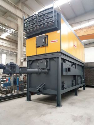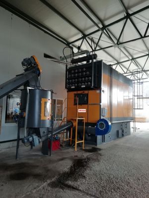 Boilers equipped with Underfed Hearth Combustion grate or mobile grate, refractory ceramic combustion chamber and water jacket walls. Heat exchanger in large diameter Mannesmann pipes. Complete with electrical panel with PLC and Lambda probe.